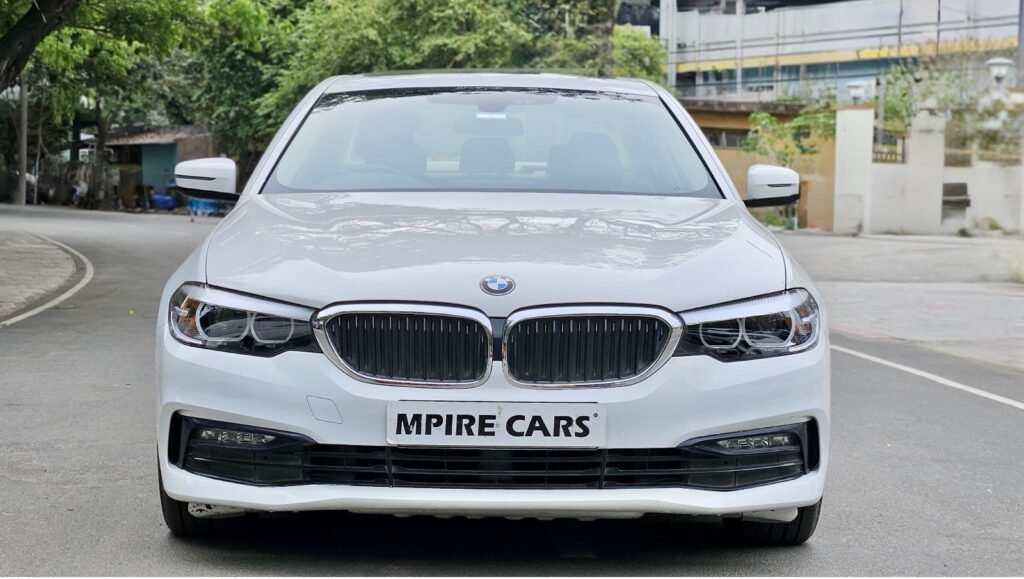 The BMW 530i Sport Line (2017) is a rear-wheel-drive (RWD) petrol sedan featuring a 2.0-liter Twin Power Turbo petrol engine producing around 248 bhp and 350 Nm of torque and 1998cc paired with an 8-speed automatic transmission. It offers RWD, a spacious 5-seat interior, 530L boot space, and advanced features like a touchscreen infotainment system, cruise control, and automatic climate control