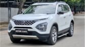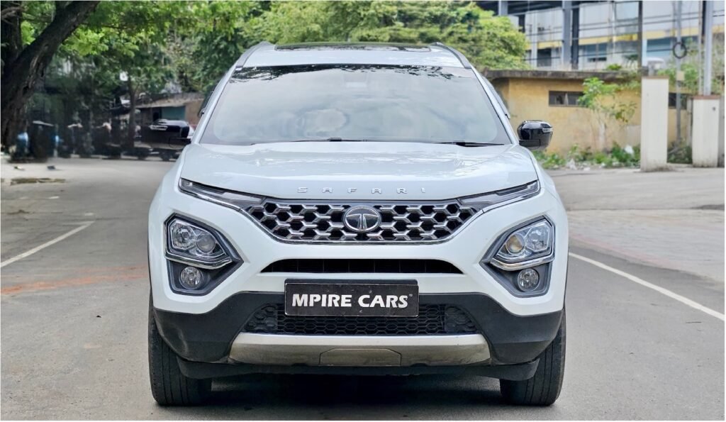 The TATA SAFARI XZA+ 2.0 DIESEL AT is a 7-seater SUV powered by a 2.0L Kryotec diesel engine producing 168 bhp, 1956 CC and 350 Nm of torque, mated to a 6-speed automatic transmission. It features 18-inch alloy wheels, a 50-liter fuel tank, and a claimed 0-100 km/h acceleration of 11.48 seconds. Key features include an infotainment system, a panoramic sunroof, ventilated front seats, and advanced driver-assistance systems (ADAS)