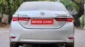 The Toyota Corolla Altis 1.8 G is a 5-seater petrol sedan with a 1.8-liter engine producing 1798 CC, 138 bhp and 173 Nm of torque. Key features include a 6-speed manual transmission, MacPherson strut front suspension, torsion beam rear suspension, 175mm ground clearance, and a 470-liter boot space.